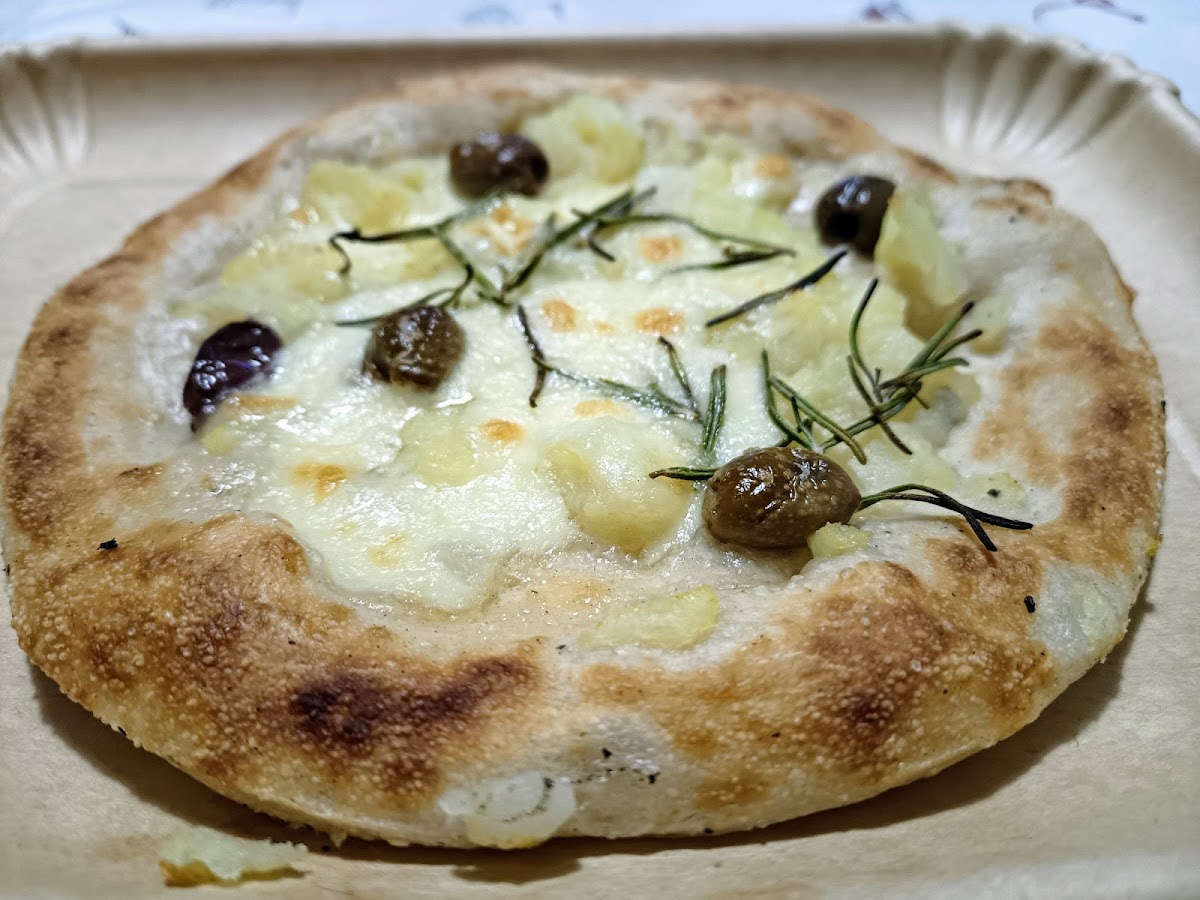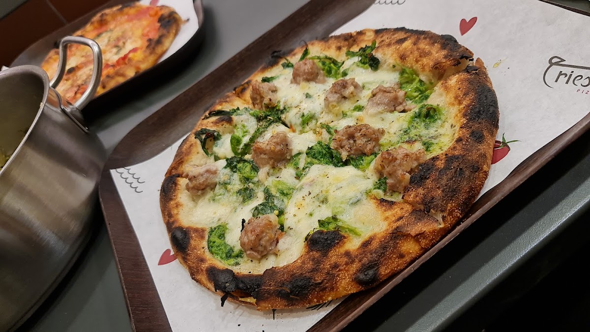 Trieste Pizza's menu is brimming with delicious options, but there are a few standout dishes that you absolutely can't miss. One of the highlights is the Pizza Patate E Olive Taggiasche, a delectable combination of tender potatoes and rich Taggiasca olives, all beautifully baked on a crispy pizza base. Another favorite among regulars is the Margherita Small, a classic pizza that delivers the perfect balance of fresh mozzarella, tangy tomato sauce, and a hint of basil. If you're in the mood for something a bit different, try the Pizzetta Con Patate E Olive Con Funghi E Con Zukkine E Pomodorini, which features a unique mix of savory potatoes, mushrooms, zucchini, and cherry tomatoes. It's a veggie lover’s dream! For those who enjoy a little spice, the Matriciana pizza will certainly hit the spot, with its combination of guanciale, tomato sauce, and a touch of chili.